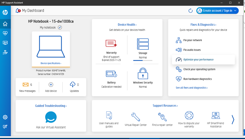 I can run HP support assistant but when I click optimize your performance nothing happens.