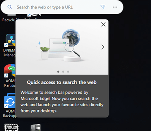 Booted up my desktop PC this morning at 6am and a new search bar appeared on the desktop (top right). It was enabled by default, and I've disabled it. Has anyone noticed it? It is another pointles...
