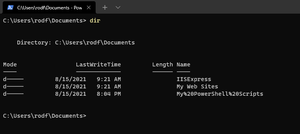 But going into the Documents folderI still only see the three folders I reported earlier today, IISExpress, My Web Sites and My%20PowerShell%20Scripts.