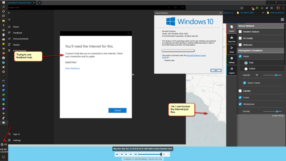 After a recent Windows update; I think I've narrowed it down to cumulative update for Windows 10 Next (10.0.19025.1052) (KB4531955) Also, I am on the Insider Preview on this machine. I noticed my internet icon looked like what you see in the attached pic.