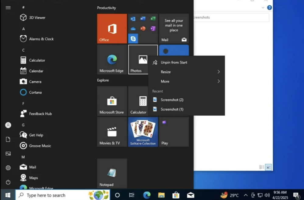 Windows 10 removes Start menu jump lists (file list) for tiles in April 2025 Update