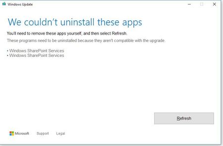 Windows 10, update 1709 - unable to install due to WSS being on my laptop. Trouble is it's not there