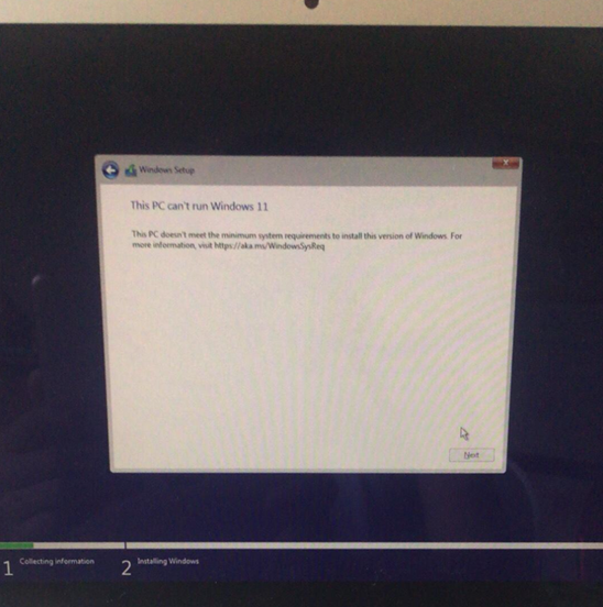 Windows 10 virtual machine and host machine display an error message stating it cannot run.