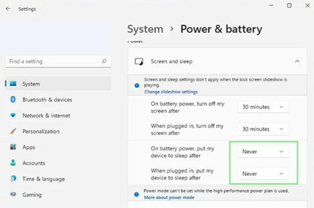 Then in sleep setting set to balanced