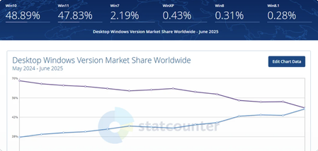 Windows 10 had been going very strong with the number of users, and even increased its percentage in some months back (including May 2025). But, recent update indicates that Windows 11 will possibly ...