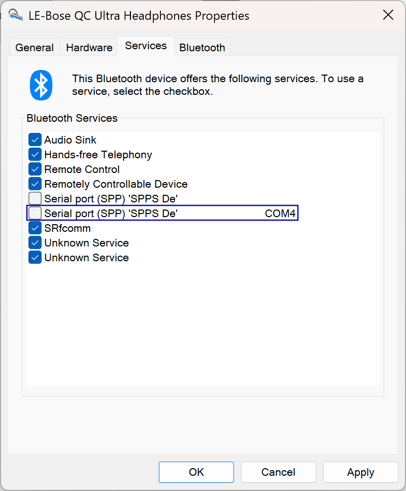 Go to Settings → Bluetooth & devices → More devices and printer settings. Then right-click on the headphones, select Properties and go to the Services tab, and uncheck the "Serial port (SPP) 'SPPS De'" service(s).