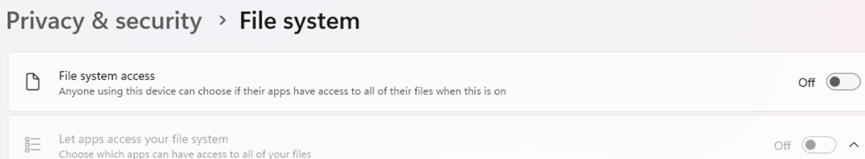 In the system settings, only options to restrict access for Microsoft Store applications can be found, with no way to limit non-Store applications downloaded from other sources. This means any program downloaded from the internet has full access to local files and the network by default, posing potential security risks. I hope the system can, like managing camera or location permissions, automatically restrict file read/write and network connection permissions for all newly added applications, and prompt the user for authorization when needed.