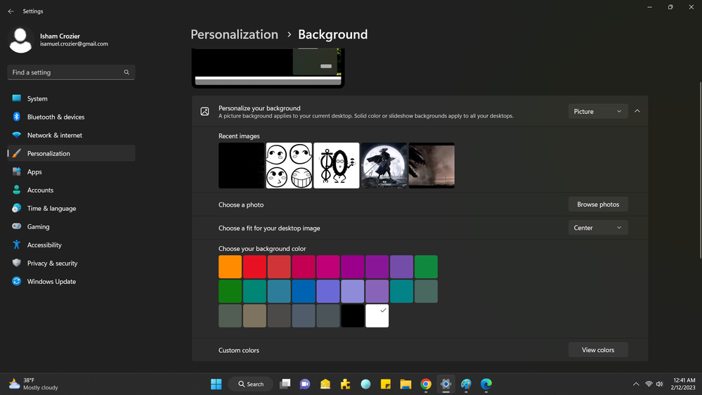 While adding a new desktop, I encountered a bug again. The background personalizing for the desktops only includes the opening of an image file. The background settings are uniform across all backgrounds.