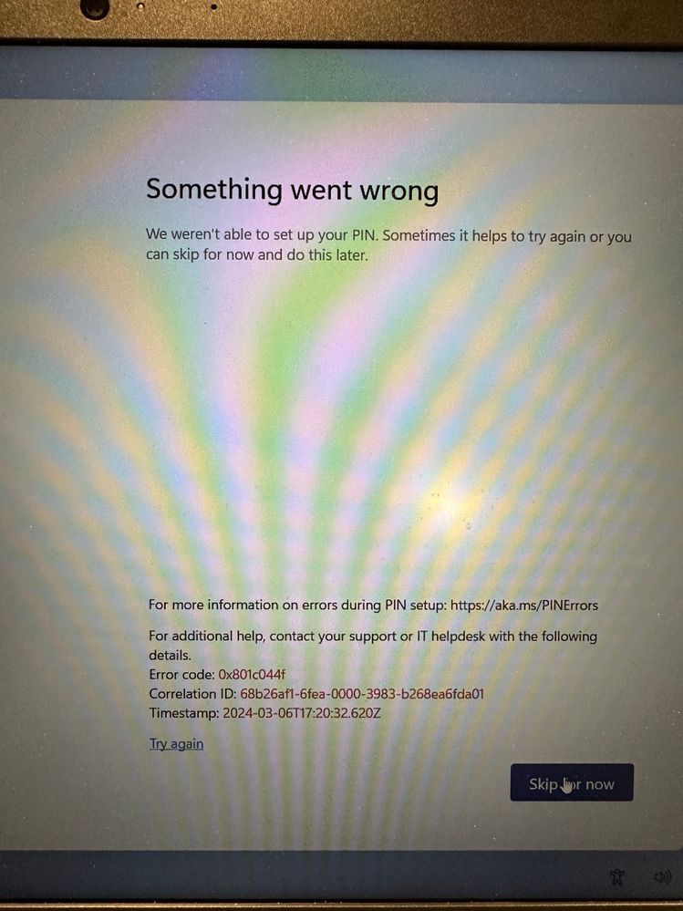 For more information on errors during PIN setup: https://aka.ms/PINErrors
