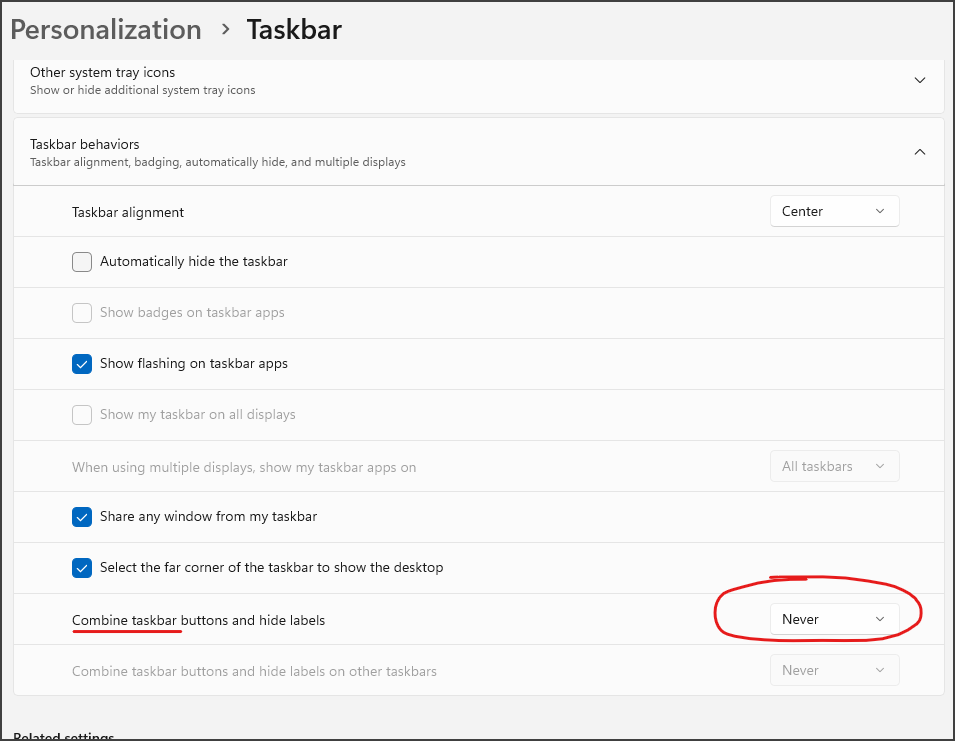 Since there is no solution to this issue, I have uninstalled Win 11 and reverted back to Win 10... The grouped taskbar bothers me that much.