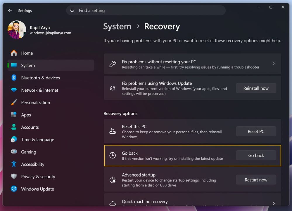 https://www.kapilarya.com/downgrade-or-go-back-to-earlier-build-in-windows-11