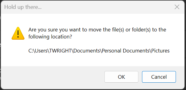 When trying to drag and drop between two folders I get this pop up.