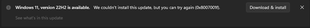 I am not able to update my Windows 11 from 21H2 to 22H2.