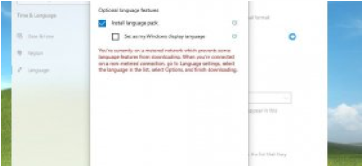 "you are currently on a network with a limit, which prevents you from downloading some language features. Once connected, go to language settings, select a language from the list, select Options and finish downloading."