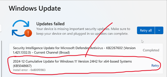 KB5048667 continues to fail to install - HELP please