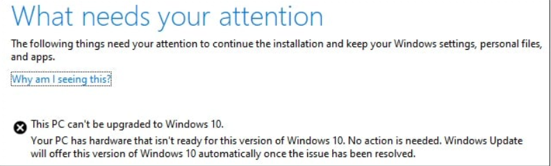 Microsoft : “What needs your attention” displays during a Windows Upgrade