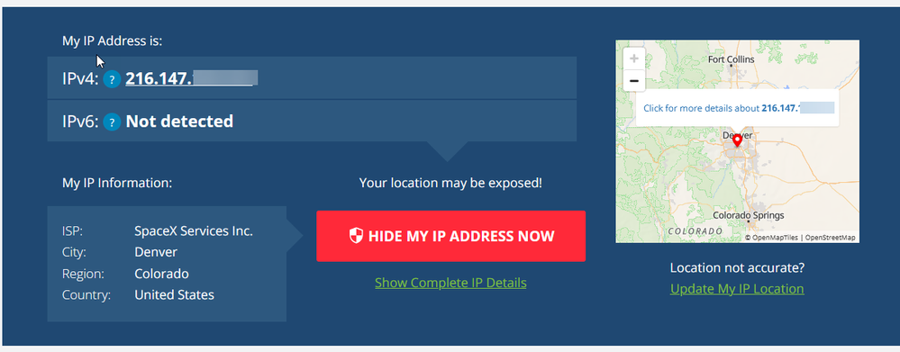 For the most part I use Firefox or Google Chrome. But I am noticing some strange issues when using Microsoft Edge. This first starting when I would use Edge to sign into web sites I visited regularly. I started seeing messages that the website was detecting a sign in from another location, Canada. This started happening regularly. So I understand that IP traffic can be routed in weird ways, and looked at 'What is my IP address' website. This is were it gets weird.