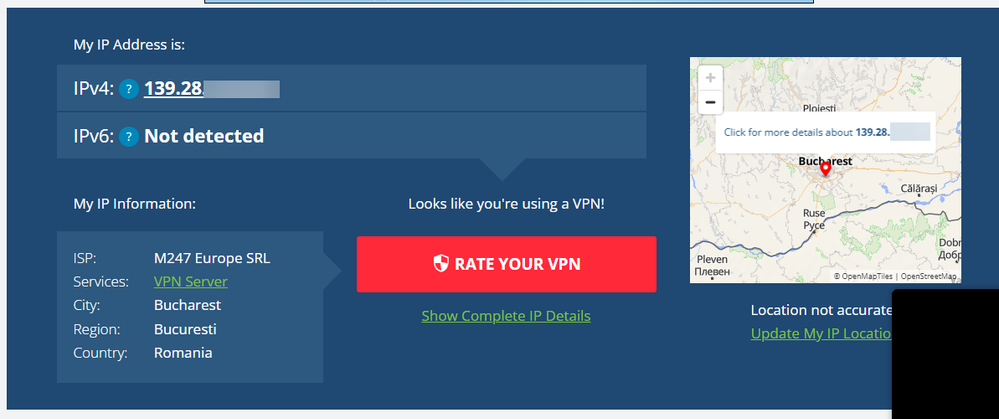 I am not using a VPN server. Previously this was reported as Canada, now it shows my IP address in Romania.