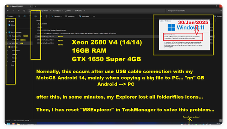 I've noticed for some time now that when using the USB connection with my Android 14 MotoG8, MSExplorer loses all the icons that represent the folders and files... The only solution I have at the ...
