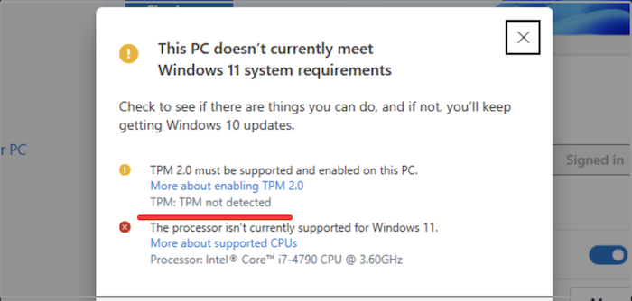 My Dell desktop PC runs Windows 10. When I downloaded the Windows 11 ISO and start the in-place upgrade, the Windows 11 setup program tell me: