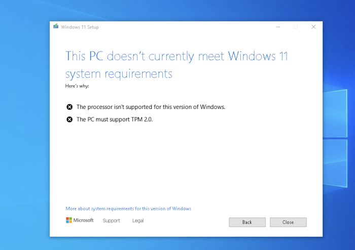 - Processor not supported: Your CPU may not be on the official list of supported processors.