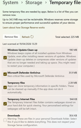 When I try to press on temporary files and clean it, it gives me like barely any files to clear: