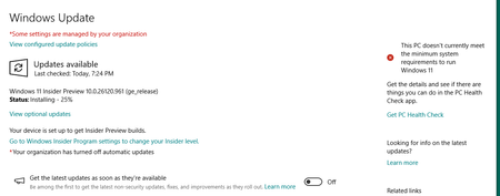 I have a very old Windows 10 PC that does not come close to being able to support Windows 11. Somehow Microsoft thinks this PC is part of the Insider Program, I have no idea how that happened to this...