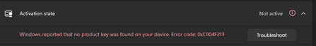 Having the same issue. Recently brought home from an upgrade job TWO activated Intel 11th gen systems, where all I did was remove the SSD and RAM. Next, I replaced these with different brands and then after re-installed Win 11 23H2 from the ISO. And then activation failed.
