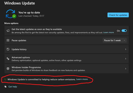 You can't directly remove or disable specific messages like the "carbon reduce emissions" one from the Windows Update section. However, you can try to hide the update if it’s an optional feature or message, by going to Settings > Update & Security > Windows Update > View update history > Uninstall updates, and see if it’s listed there. If it’s a system-wide message, you might need to wait for an update that removes it or use a third-party tool to tweak notifications.