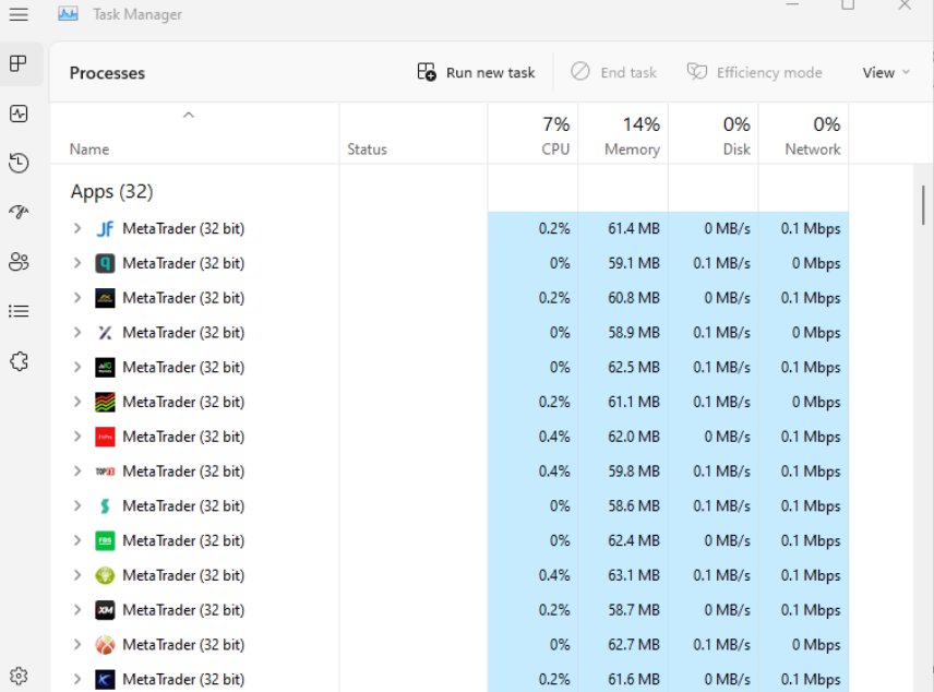 It is abnormal for MetaTrader as it has too many threads running in background.