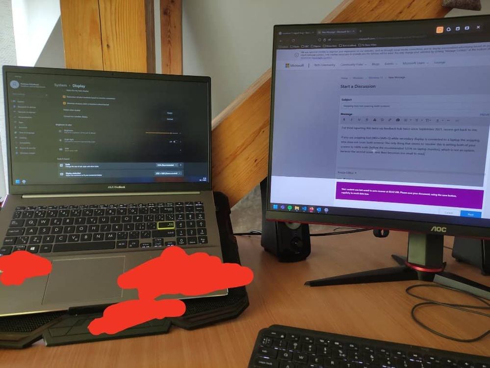https://www.reddit.com/r/Windows11/comments/qe5i8k/snipping_tool_broken_when_using_multiple_monitors/ - Reza_AmeriSilver ContributorIn case you shared it in the Feedback Hub app, the Windows team will review it.