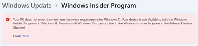 I have been a long time Windows 10 Insider. When 11 came to Insiders I updated my computer to it although technically speaking it is not eligible for the released version. Still it was updated. I was...