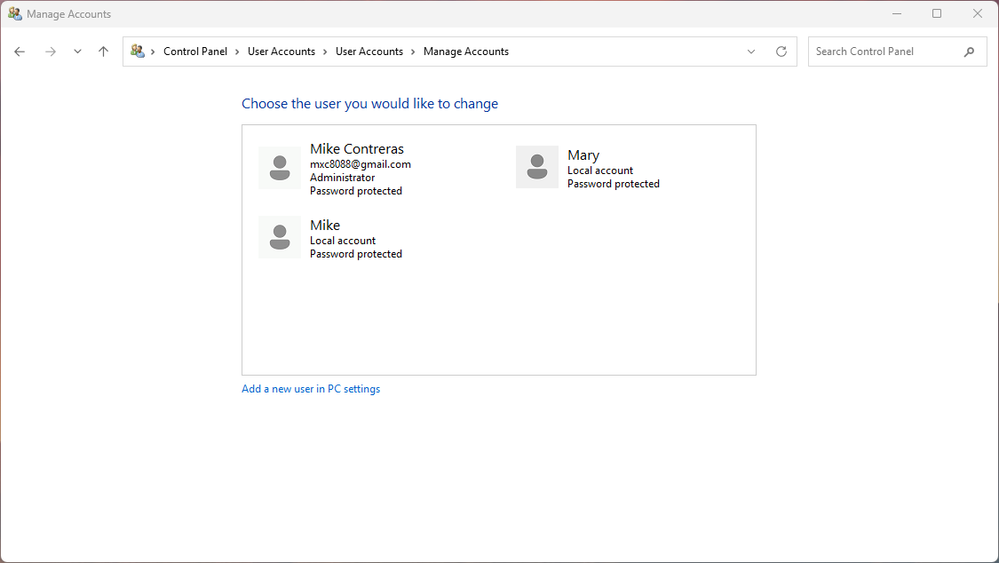 Have 3 accounts on Windows 11: