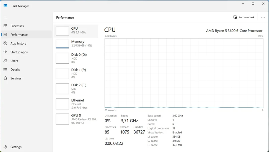 Processes are around 80, but that doesn't make me as happy as that straight "CPU Utilization" line, not doing anything behind my back. Feels I came to the end of optimizing Windows 11, and wanted to share with someone.