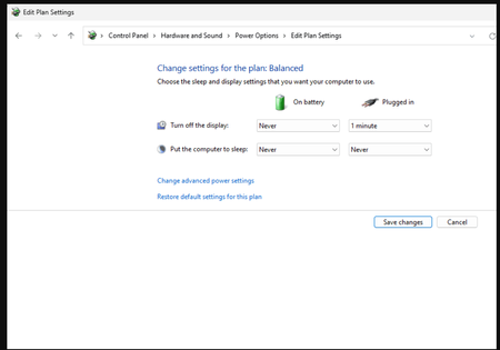 - Power Settings: Set Sleep to Never (plugged in).