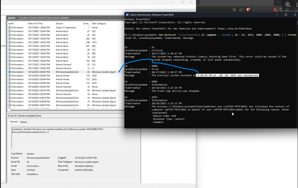 I don't have any issue just trying to learn from the event viewer exactly what happened and if i am interpreting this correctly.