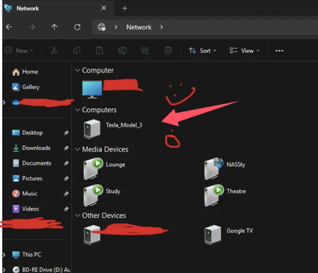 When I access the root folder of file explorer, there is an unknown device named Tesla_Model_3 listed there. I don't have a Tesla Model 3? What could be the problem?