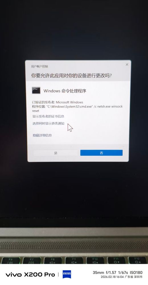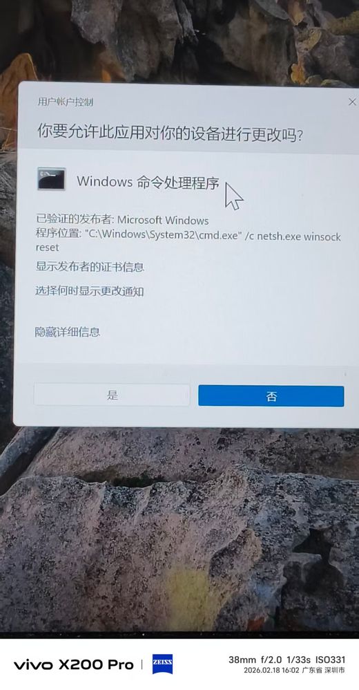Your current design only answers "WHAT is running" (e.g., cmd.exe executing netsh winsock reset), but it deliberately hides "WHO requested it." This obfuscation renders the security prompt useless.