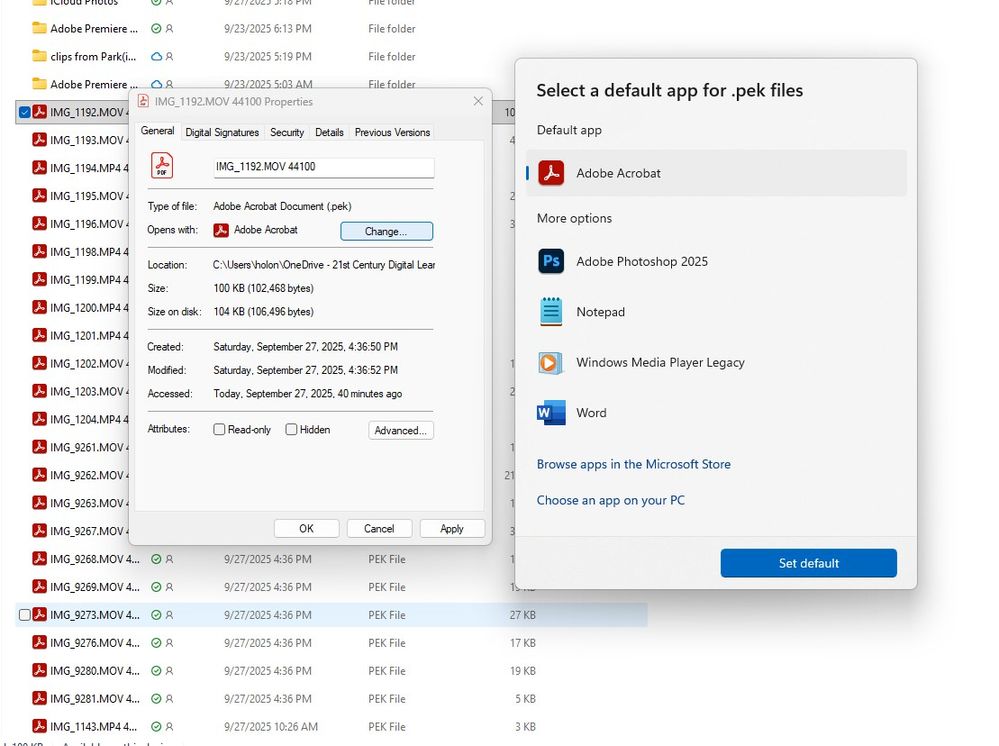 When I download videos from icloud they are downloaded as videos but when I move to my One Drive folder they convert...I saw someone somewhere say to use the properties button but the options don't seem to allow me to just keep the files as MP4s as they originally are... (When I download google photos videos they are in heic files and I wish there were a cure for that but maybe it's with Google that I need to change something with.
