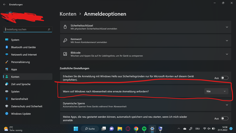 Wann soll Windows nach Abwesenheit eine erneute Anmeldung anfordern?