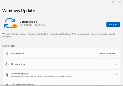 We didn't find any updates that are published for your edition at this time. windows pro dev error