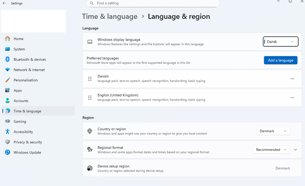 Bought a computer with an English version installed and tried to install Danish and it is completely mixed up. As you can see from the attached screenshots