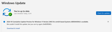 I have just purchased a Microsoft Surface 7 Laptop Model 2036 Snapdragon(R) X 10-core X1P64100. It comes with Co-pilot, smart this and that, yet it cannot update windows kb 5044384. I have tried ev...