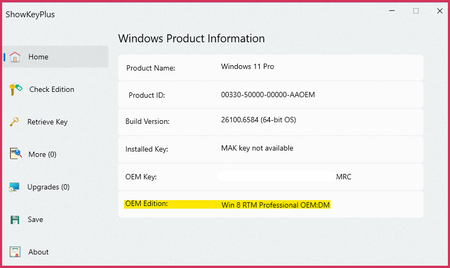 Hi all, I have a HP Prodesk G4 and have performed a fresh windows 11 install. The install is not picking up the Windows 10 Pro OEM Product Key from the BIOS that these devices came installed with. ...