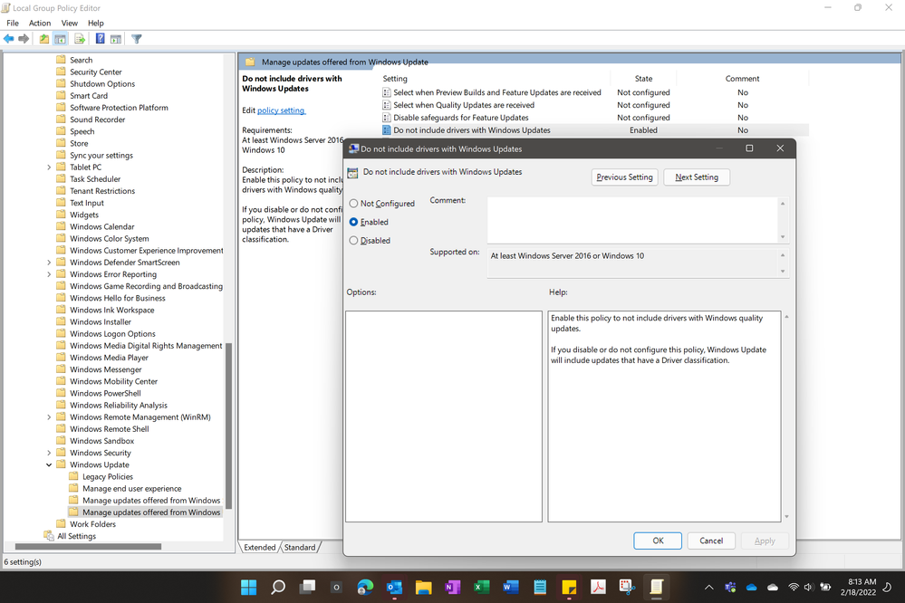 To prevent Windows Update from automatically installing the incorrect driver I had to edit my Group Policy settings to not update drivers. I tested by checking for updates and it did not include the drivers this time. If your pc is on a domain, then your administrator may have control over your group policy settings and might need to make the change for you.