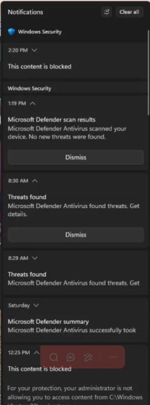Windows Defender states it took action against threats