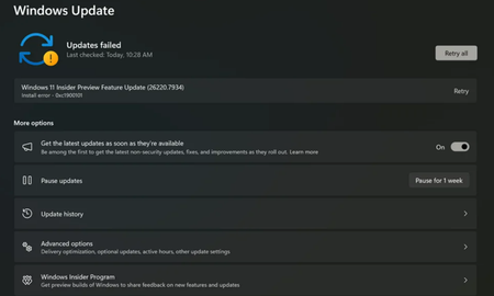 Windows Insiders Install Error 0xc1900101