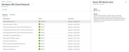 Is your provisioning failing? The warning on the OPNC happens because AD Sync hasn't ran while we tested the OPNC and created a computer object. Marked as a warning because it's normally just an AD Connect timing issue rather than a hard failure.- jamesratcliffeAug 04, 2021Copper Contributor