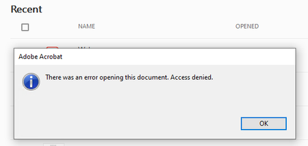 Hi, we have Business CPC, and we are having an issue opening pdf attachments from Outlook to Adobe DC/Reader. We are getting an error "There was an error opening this document. Access Denied." I comp...
