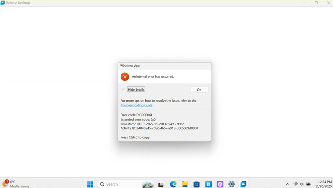 We are facing a critical and persistent connection failure for a Windows 365 Enterprise Cloud PC that appears to be stuck in a state where the VM is not available to the RDP client.
